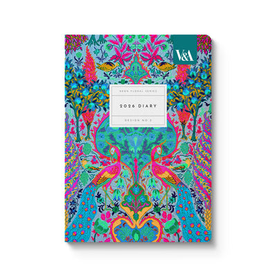 Introduce elegance to your product line with the Neon Floral Peacock Premium Perfect Bound Diary. This A5 diary, inspired by intricate designs from the V&A archives, includes 188 lined pages in a sustainably crafted format. A sophisticated option for eco-conscious collections.