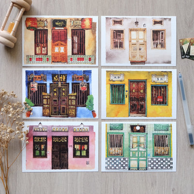 Inspired by the uniqueness of the setting and 6-iconic shophouse front doors are featured in watercolour painting. Sketch your good memories back by sending a piece of the special Singapore touch to your friends and your loved ones.