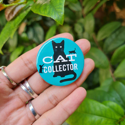 Purrfect for aspiring Crazy Cat Ladies and Lords, this light blue badge features a silhouette of a cat and the words “Cat Collector.”