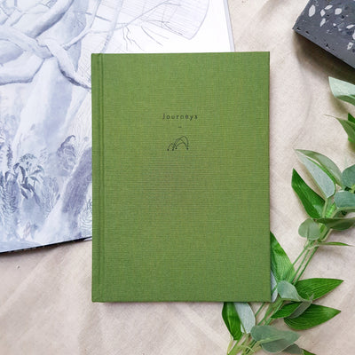 A linen-bound notebook designed to accommodate ideas, aspirations and worries in the therapeutic activity of your thoughts.