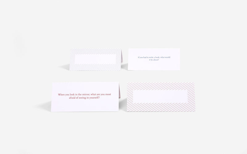 This pack collects 80 of these sorts of questions to ensure a meal together can be at once meaningful, entertaining and touching. Laid out on placecards, the questions gently and charmingly pull our fellow diners towards the sort of topics that matter most to our deeper selves - and help us get the most out of one another.