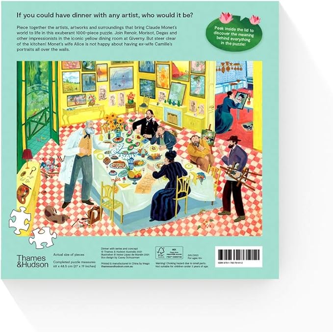 Did you know that the painting that inspired the entire impressionist art movement is hanging on the back wall? Or that the poster on the table is from the first Impressionist exhibition that opened in Paris in 1874? Put together this 1000-piece puzzle and then peek inside the lid to discover the meaning behind everything in the artwork. There's 23 interesting facts to discover.....