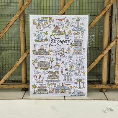 You can actually walk around Singapore with this print! Packed with all the landmarks and attractions you should visit as a tourist or even as a local! Hand-drawn and printed on quality 300 gsm Artcard with a backing card.