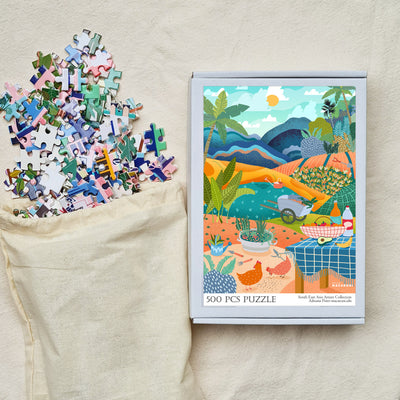 Adriana Putri is one of the founders and designers of Macaroni.idn from Indonesia. Their artworks are inspired by Indonesian heritage. This illustration visualize a scene from ‘Bawang Merah Bawang Putih’ folktale.