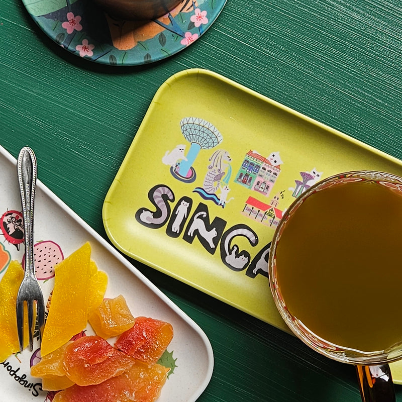 Feature illustration of Singapore Landmarks and our Naughty Kitty Shop Keeper - Mayo, best gift for Cat Lovers!