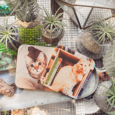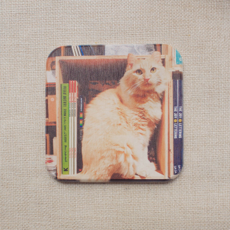 Single piece diatomite coaster featuring the bosses of Cat Socrates!