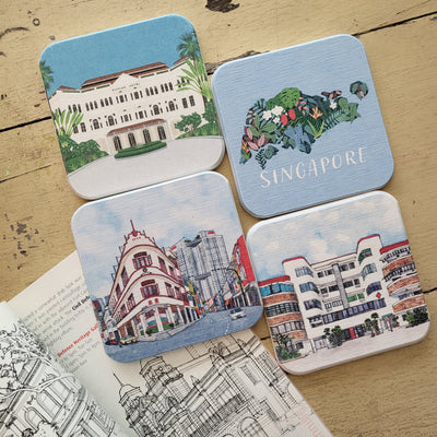Single piece diatomite coaster in a series of Singapore Landmark designs.