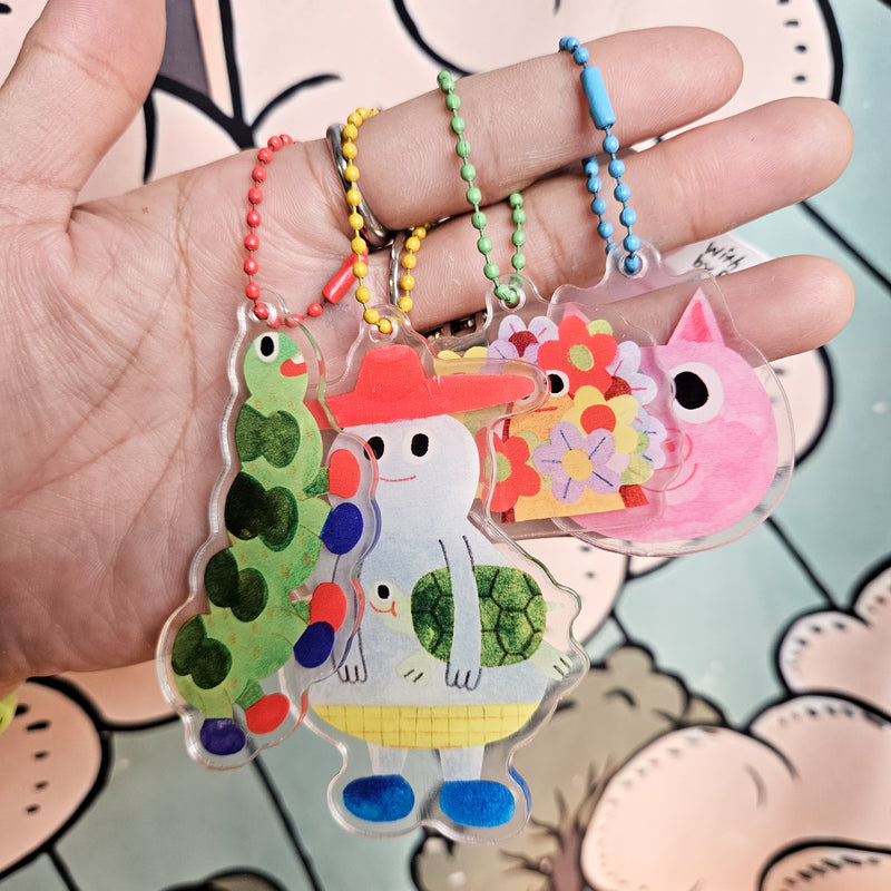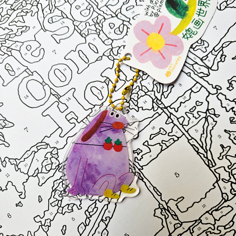 Acrylic charm 1 piece, can be hooked on bag straps or keychain with the ball chain,