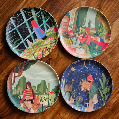 Bamboo Plate with print, available in single plate or 4 pcs set in a box