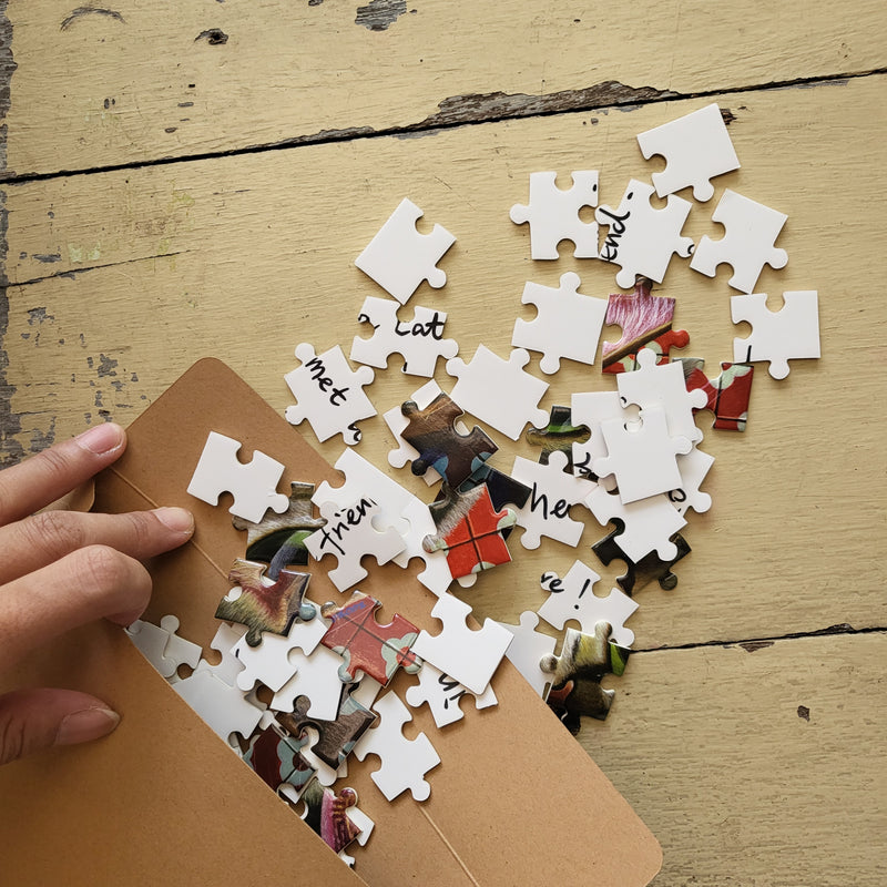 Break the puzzle and pack them into envelope when you finish your message at the back.