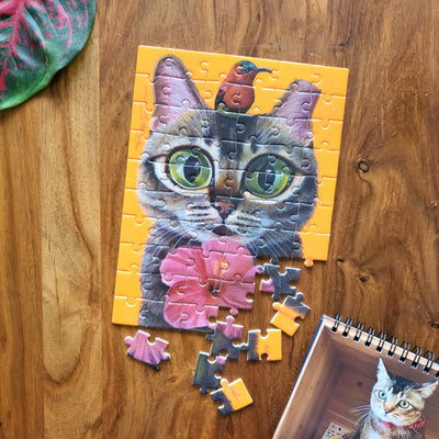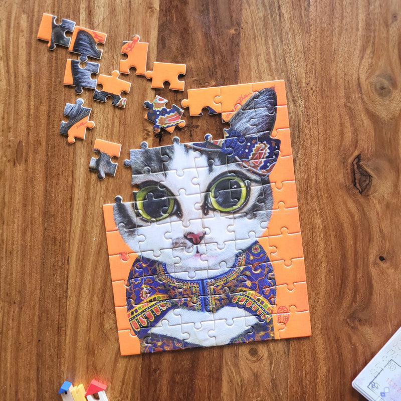 Package content: 1 set of 60 PCs puzzle, an envelope, a grey card for you to put into envelope with the puzzle pieces, also can be use as backing to put together the puzzles