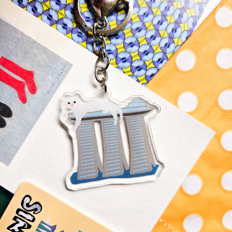 Naughty Kitty &  Singapore Landmarks Acryic  Keychain