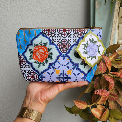 Make-up Pouch in peranakan rose tile inspired mix tile graphic, roomy size. Fully lined inside.