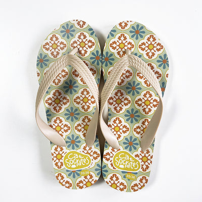 Peranakan Tile Flip-flops Orange Plum Blossom tile