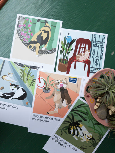 This series is based on our neighbourhood Cats, hand-drawn and printed on quality 300 gsm Artcard. It’s a perfect souvenir for cat lovers. Send a personal touch to your loved ones.