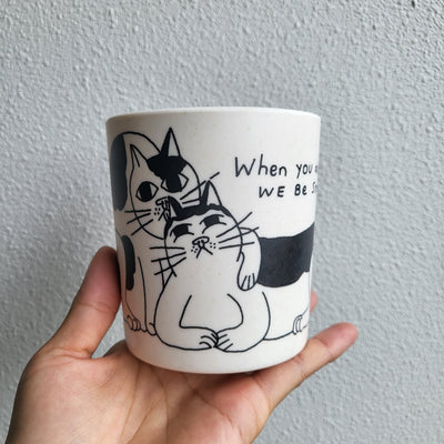 Water color illustration of two cats with wording: When you ain't looking, we be smooching