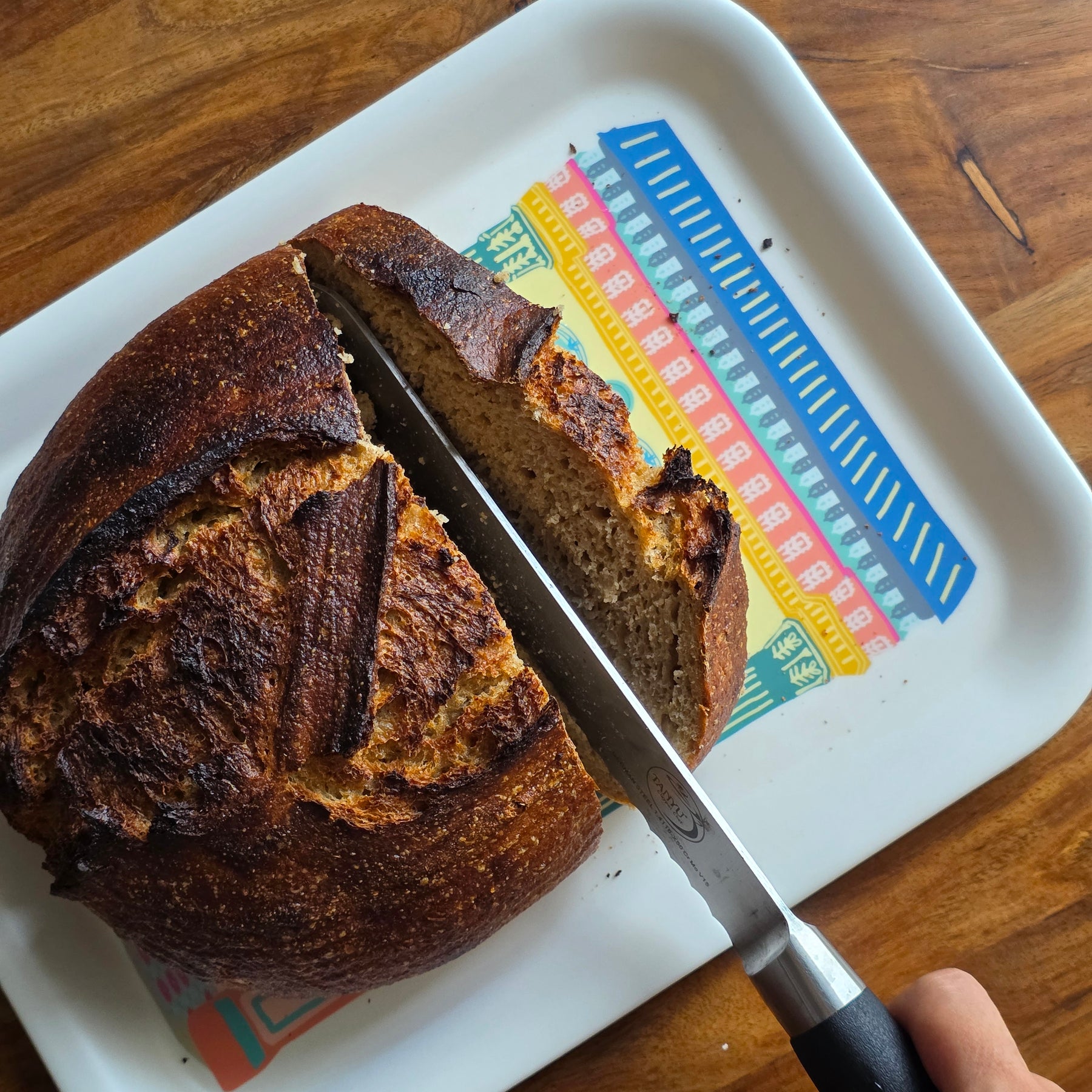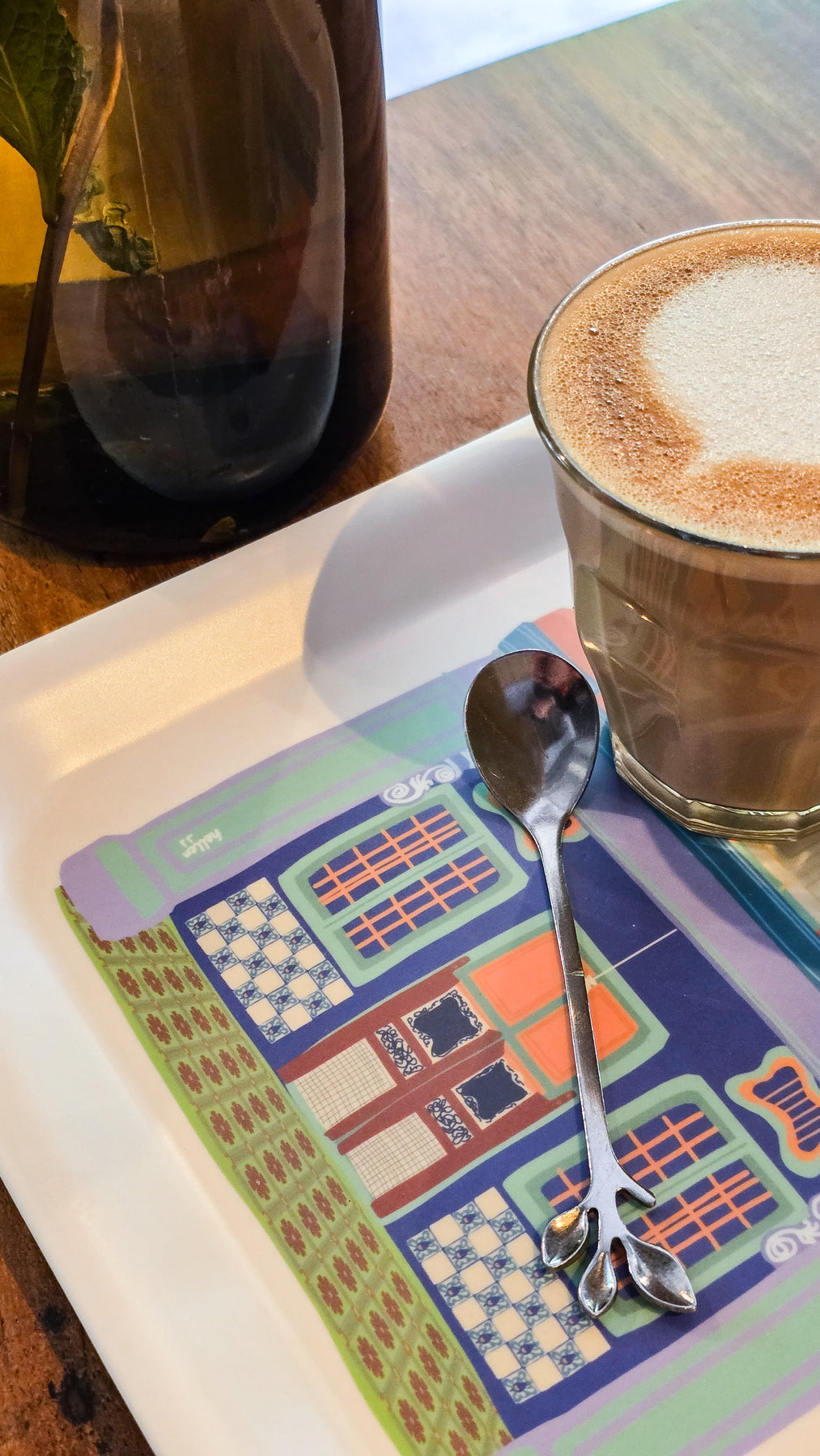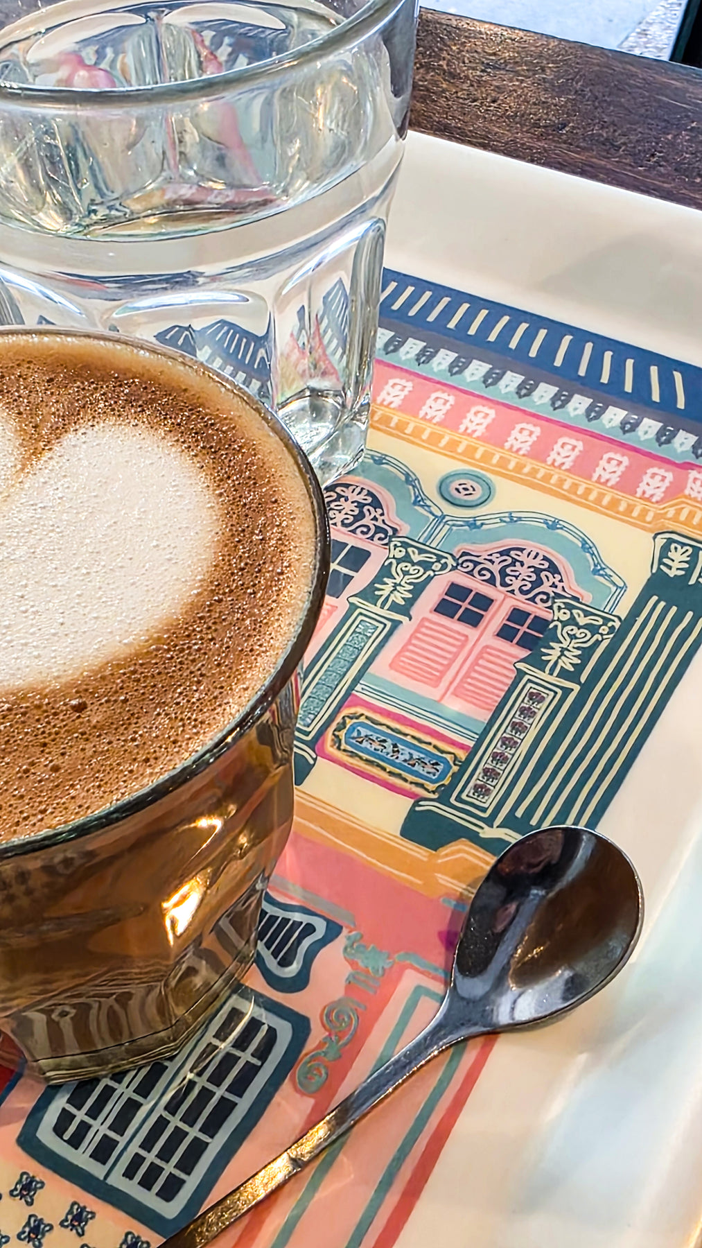 Bamboo tray with drawing of Pop Art color impression of Peranakan Shophouse in Singapore.