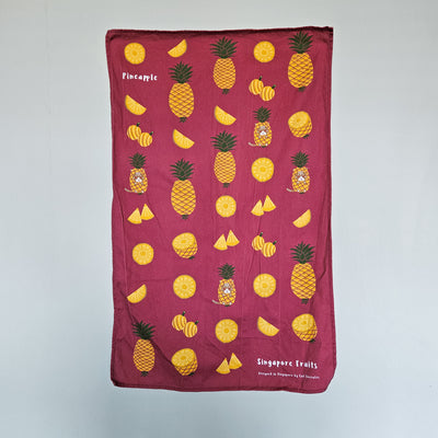 Add color to your Kitchen with this fruity tea towel, pineapple drawing on beautiful purple background. Come look for the little kitty hiding inside the pineapple!