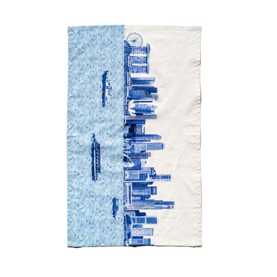 Singapore Skyline tea towel, featuring a stunning blue print of Singapore's most iconic landmarks! From the majestic Marina Bay Sands to the iconic Merlion and the modern Esplanade, this tea towel captures the essence of Singapore's breathtaking skyline.