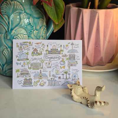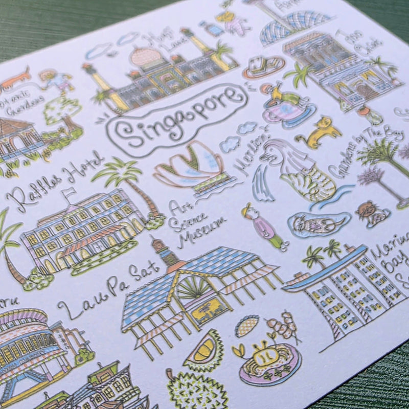 You can actually walk around Singapore with this Postcard! Packed with all the landmarks and attractions you should visit as a tourist or even as a local! Hand-drawn and printed on quality 300 gsm Artcard. It’s a perfect souvenir for friends and art lovers. Send a personal touch to your loved ones.